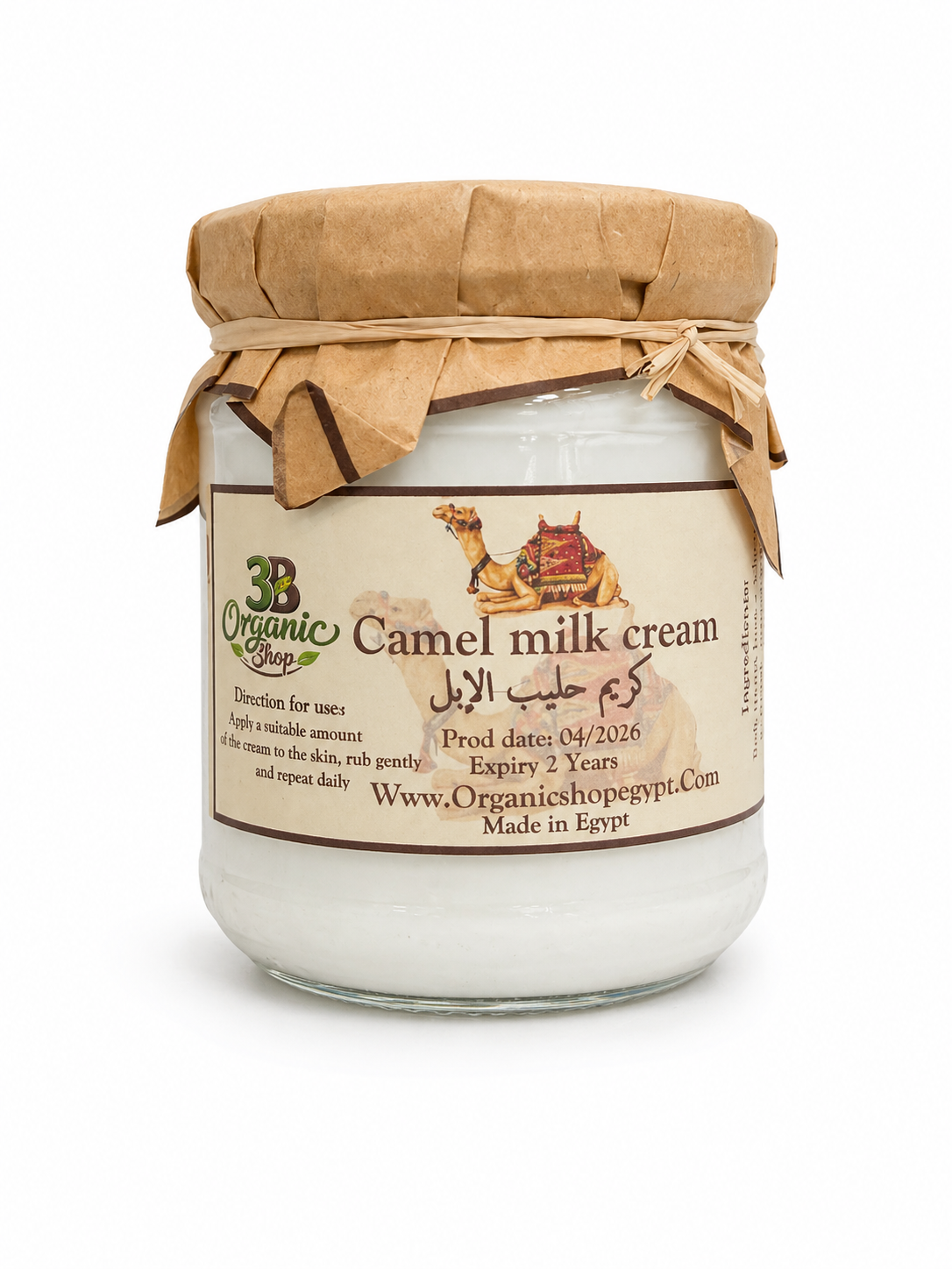 Camel Milk Cream Egypt by 3B Organic Shop is a nourishing moisturizer enriched with shea butter and wheat germ oil. It helps keep skin soft, smooth, and hydrated for a fresh, comfortable feel every day.